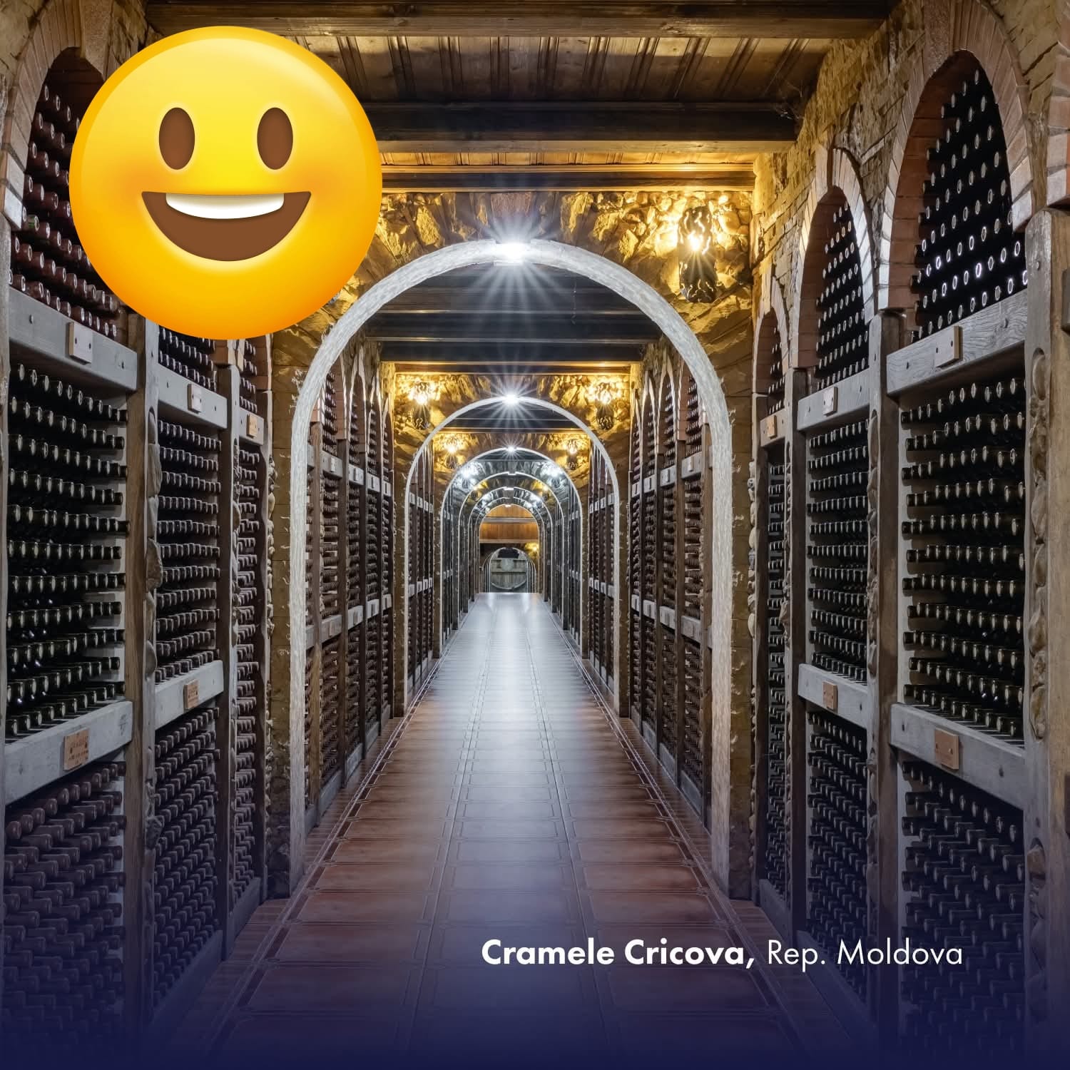 Urmatoarea destinatie este Cramele Cricova, cunoscute drept Orasul Subteran, faimoase la nivel mondial pentru calitatea vinurilor produse si pastrate aici. Vom face turul celui mai mare orasel subteran din lume, intins pe aproape 100 de kilometri de galerii utilizate pentru fabricarea vinurilor linistite si a spumantului Cricova, realizat dupa metoda clasica Dom Perignon – Champenoise. Vom admira colectia de vinuri apartinand unor personalitati politice precum Traian Basescu, Klaus Johannis, Angela Merkel, Juan Manuel Barroso, Donald Tusk si Vladimir Putin, care si-a serbat a 50-a aniversare in beciurile de la Cricova. Vizita va include o plimbare cu masinutele electrice prin tunelurile de calcar alb si o degustare de vinuri, acompaniata de mici gustari.